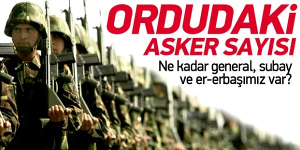 Yedek subay, sivil memur/işçi, uzman, yükümlü  personelle Türk Silahlı Kuvvetlerinin toplam mevcudu 671 bin 275 kişi oluyor. Askeri personel içinde uzman oranı yüzde 35`i buluyor.