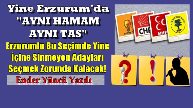 Kısacası durum yine tahmin ettiğiniz gibi, böyle giderse Erzurumlu yine içine sinmeyen adayları seçmek zorunda kalacak ve yine o seçilecek kişiler mecliste Erzurum?u beklendiği gibi temsil edemeyecek. Peki bunun aksinin olma ihtimali yok mu?