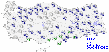 ve yüksek kesimleri karla karışık yağmur ve kar yağışlı.(13)