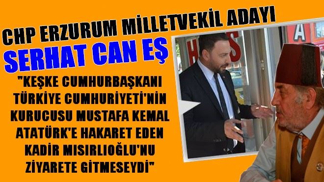 CHP ERZURUM MİLLETVEKİL ADAYI SERHAT CAN EŞ, KATILDIĞI HAFTAYA BAKIŞ PROGRAMINDA TÜRKİYE CUMHURİYETİ´NİN KURUCUSU ULU ÖNDER MUSTAFA KEMAL ATATÜRK´E HAKARET EDEN KADİR MISIRLI´YI CUMHURBAŞKANIMIZ SAYIN RECEP TAYYİP ERDOĞAN´IN HASTANEDE ZİYARETİ´NDEN DUYDUĞU ÜZÜNTÜYÜ DİLE GETİRDİ.